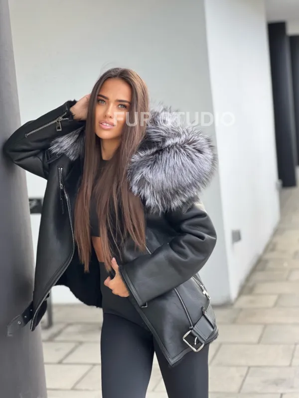 Дубленка – косуха с капюшоном из меха чернобурой лисы – выбор современных девушек, идущих в ногу со временем. Косуха – тренд последнего столетия. Модель выглядит дорого и роскошно. Кожа приятна на ощупь и не требует дополнительного ухода, а ее качество будет радовать владелицу не один год. Мех овчины не даст замерзнуть в прохладное время года.