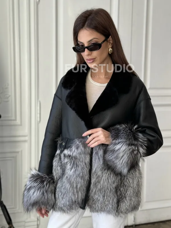 Дубленка с мехом чернобурки - цвет черный 100678