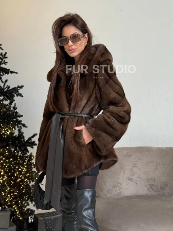 Норковый жакет с капюшоном, роспуск в цвете орех доступна для покупки в нашем шоуруме Furs Studio в . У нас так же есть доставка во все города России. Добавьте немного роскоши в свой гардероб с этой шубой, которая будет служить вам многие годы.