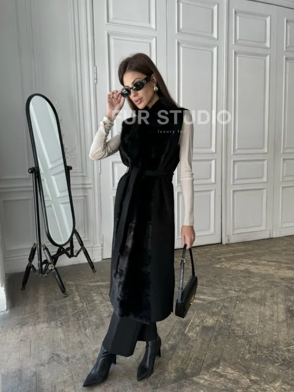 Стильное кашемировое пальто с мехом норки 100892