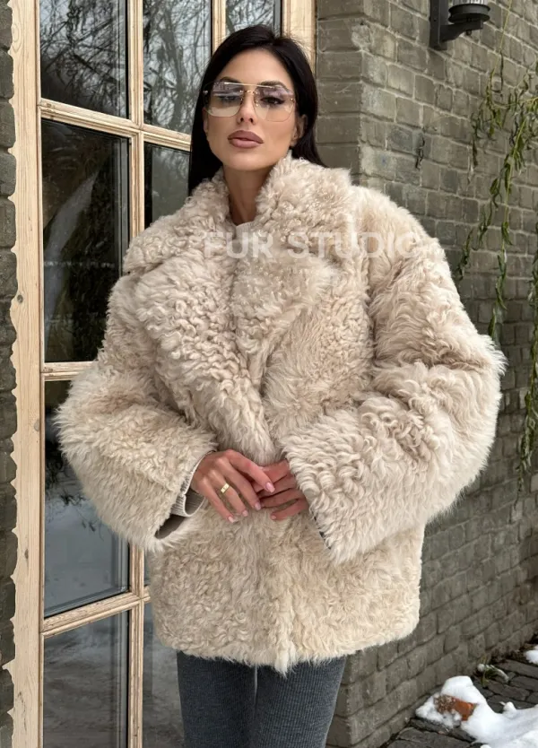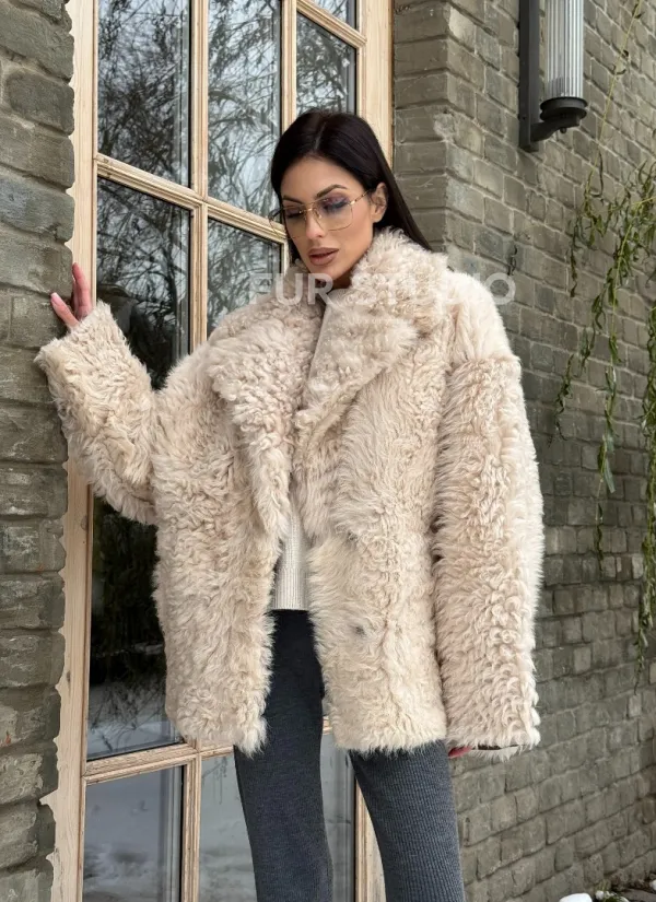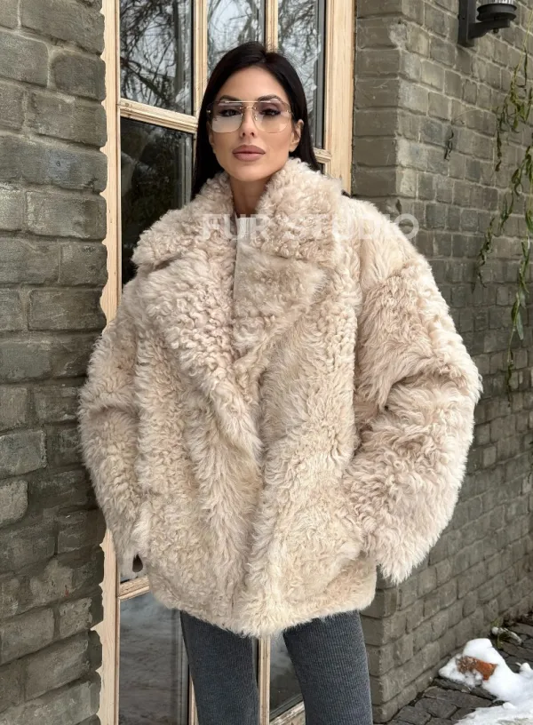 Светлая короткая шуба из испанской овчины доступна для покупки в нашем шоуруме Furs Studio в , а также предлагается удобная доставка во все города России. Обогатите свой гардероб этой дубленкой, которая прослужит вам многие годы, добавив немного роскоши в ваш повседневный образ.